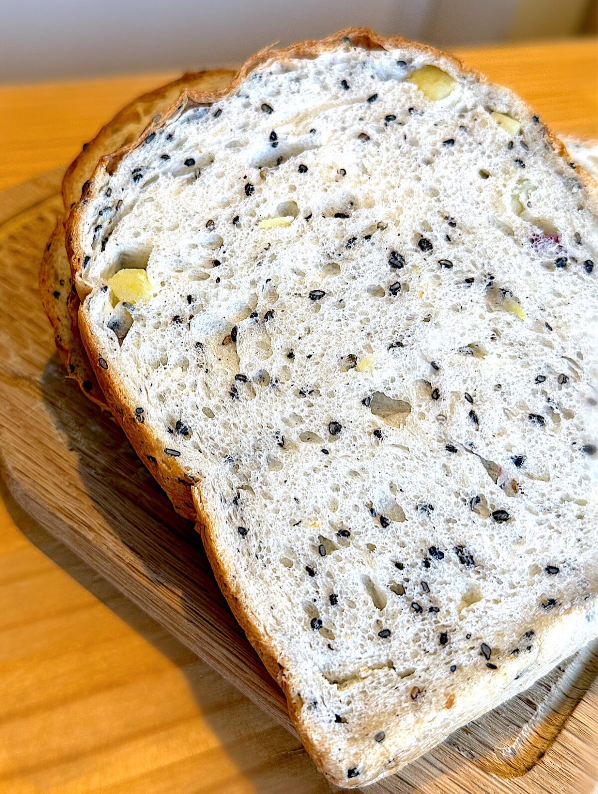 べにはるかのほっくり甘いさつまいもと、焙煎黒胡麻の入った香ばしい食パン。